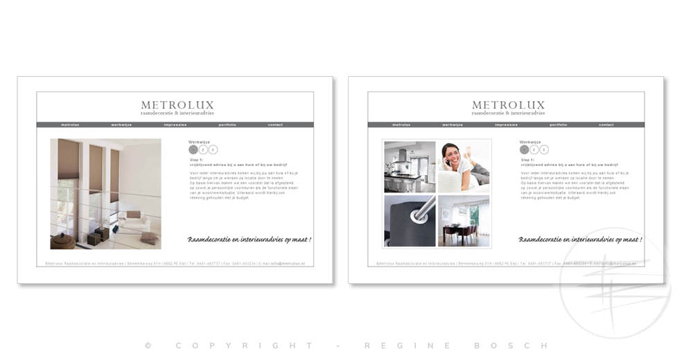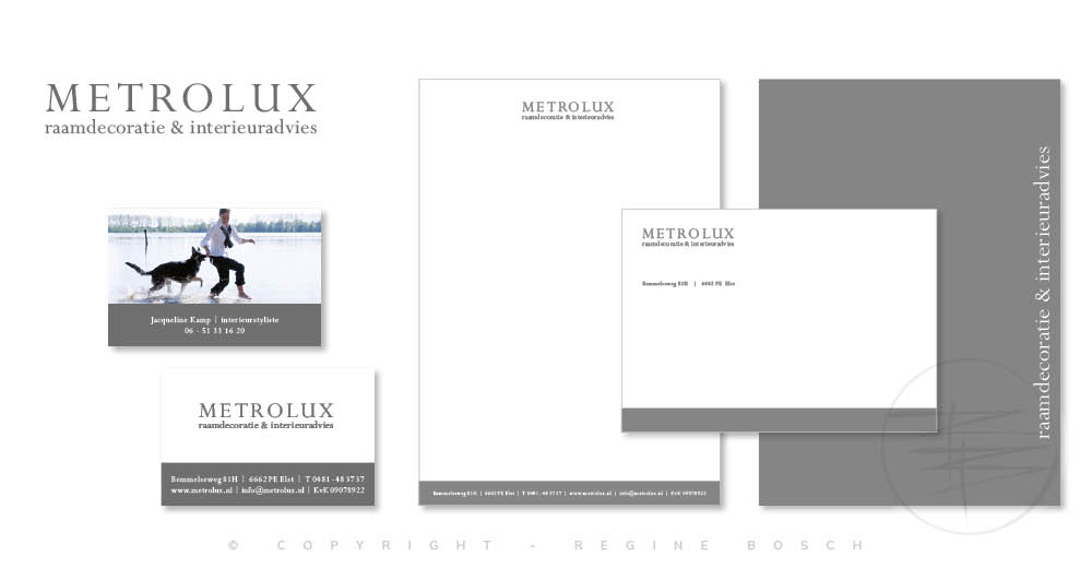 I have created a lot of advertising material for Metrolux, from website (raamdecoratie-op-maat.nl) to brochure and various corporate identity components such as stationery, business cards and more. Her corporate identity already existed, we fleshed it out together in close consultation.