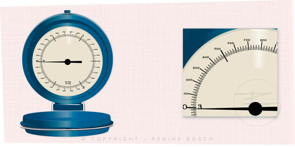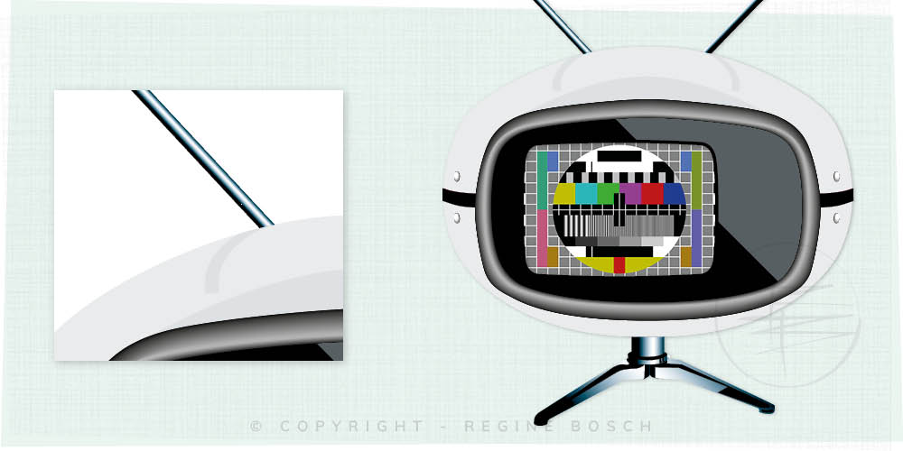 Hyperrealistische illustraties van vintage apparaten. Een televisie uit de space age, een radio uit de fifties en een weegschaal uit de seventies!