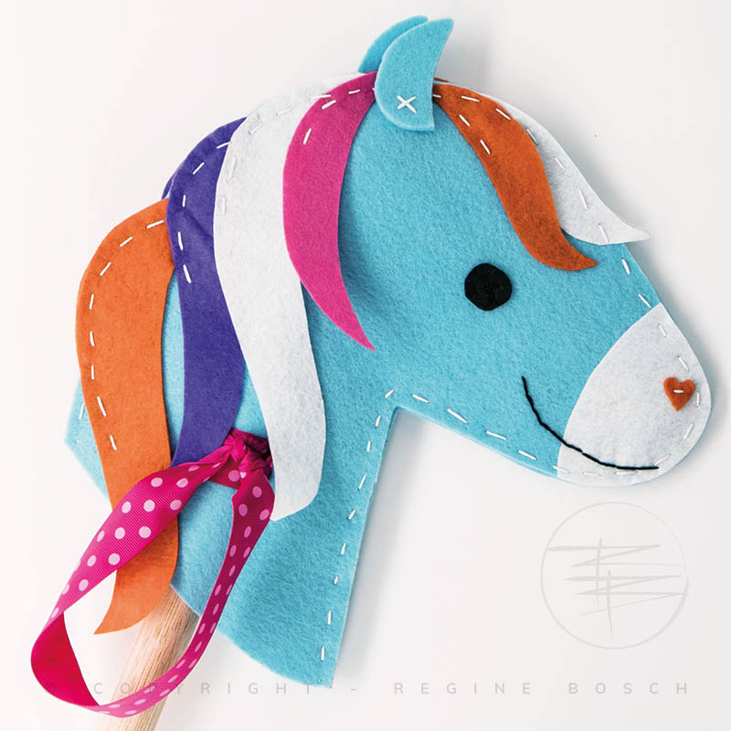 Design, illustration and product development of a felt DIY hobbyhorse and dragon. The felt is pre-punched with holes for the embroidery stitches, so that it is easy to assemble.