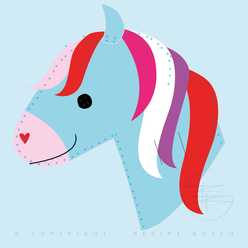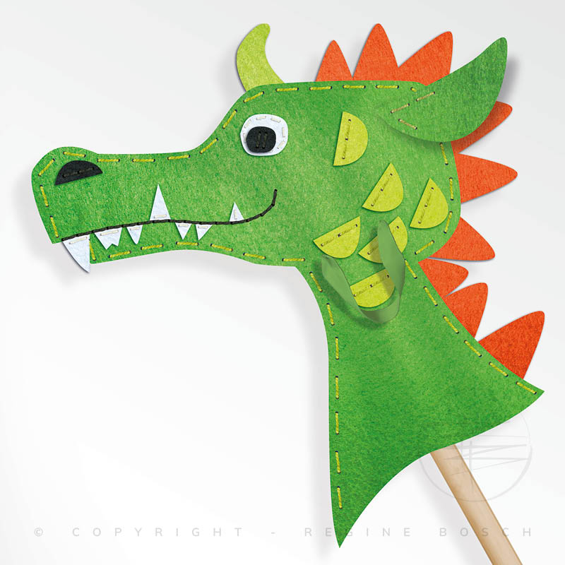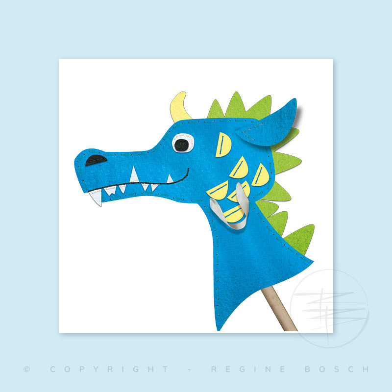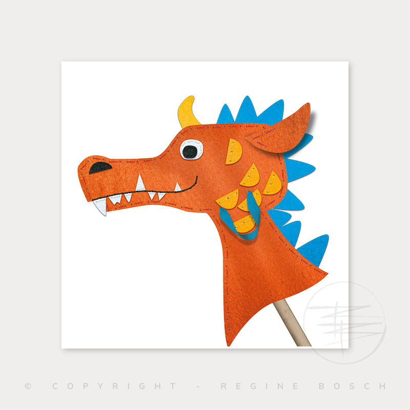 Ontwerp, illustratie en productontwikkeling van een vilten DIY stokpaardje en -draakje. Het vilt is voorgestansd met gaatjes voor de borduursteken, zodat het geheel eenvoudig in elkaar te zetten is.